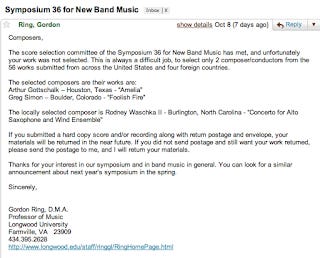 composer FAIL #14Jennifer JolleyOct 25, 2010ShareI think I have a new goal now: 30 rejection letters before I turn 30. I have 16 to go.PreviousNext